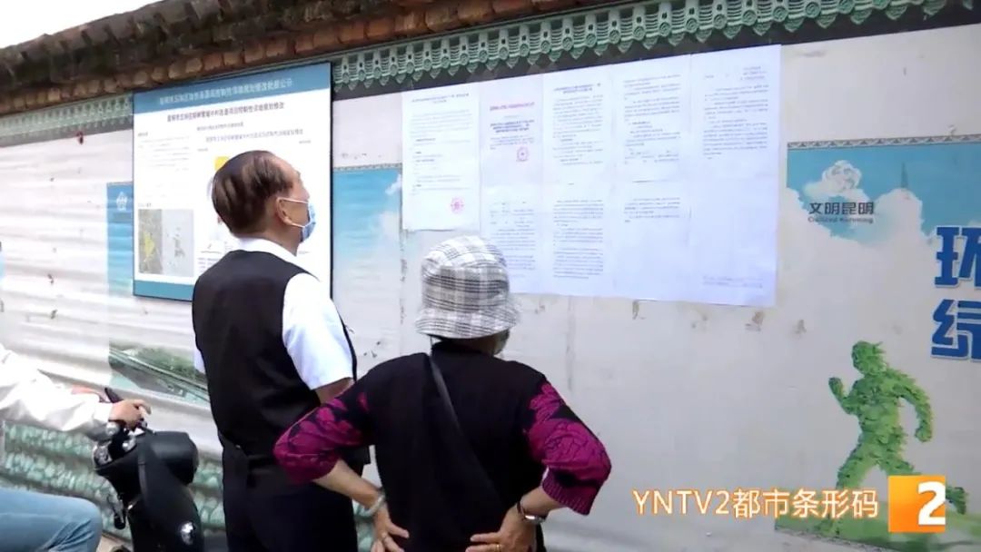 在棕树营片区城中村改造区域工地外围,有工作人员在墙面上粘贴了一些公告和通知内容,现场有一些居民得知消息后来到这里对内容进行了解。