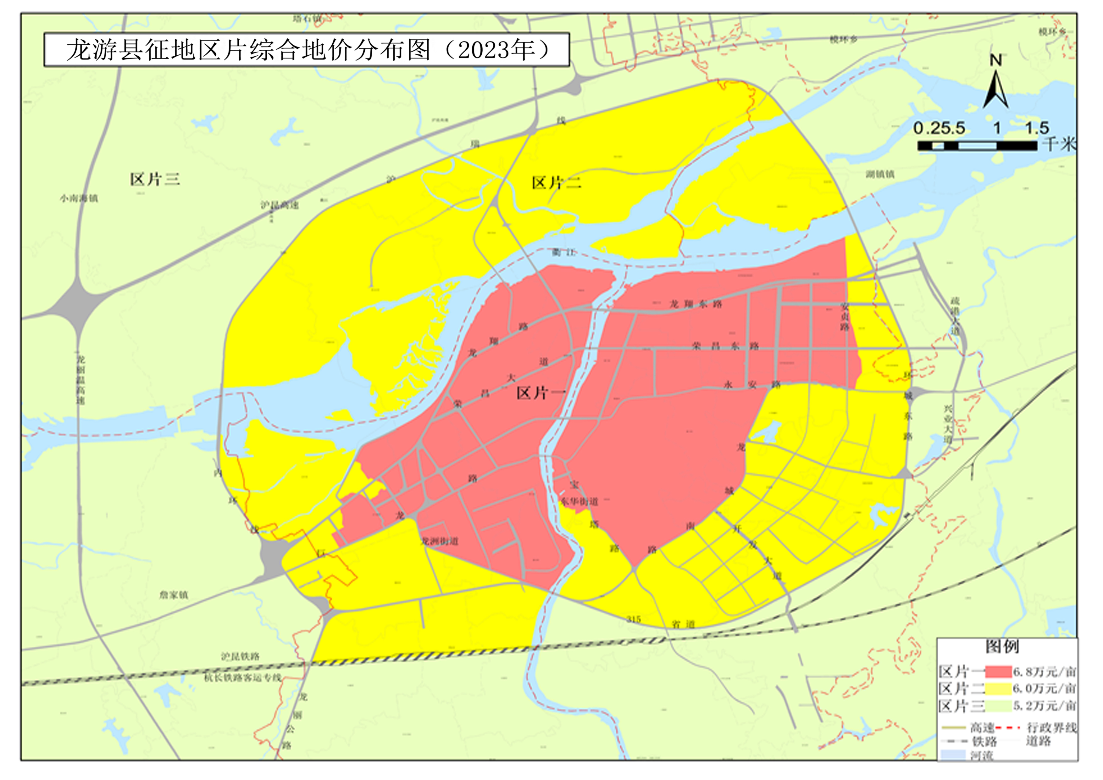 注:具体划分界址以龙游县征地区片综合价级别图为准。