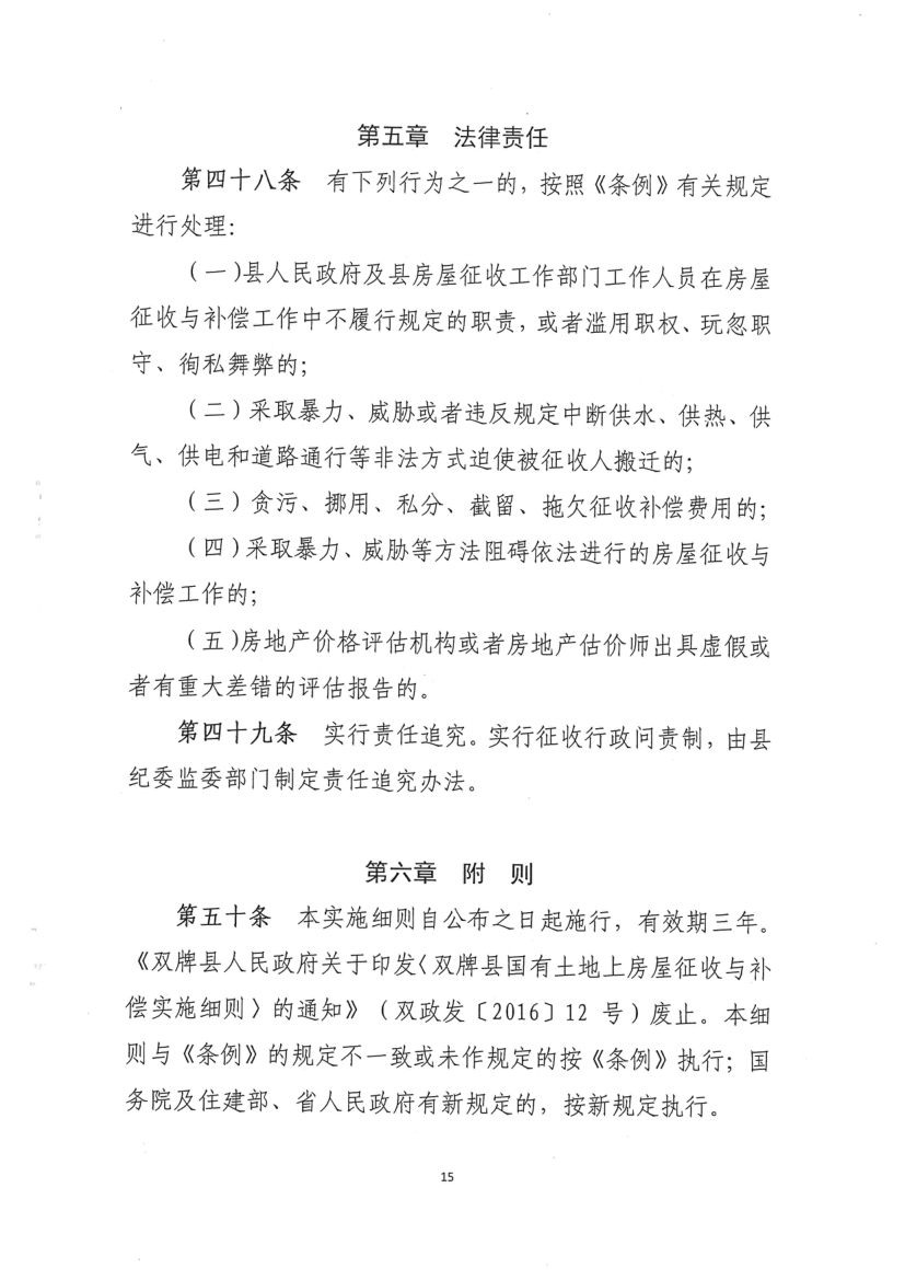 《双牌县国有土地上房屋征收与补偿实施细则》