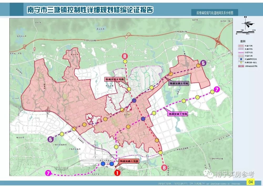 今年4月25日,南宁市自然资源局发布《关于南宁三塘镇控制性详细规划修编论证公示》的公告,应土地盘活的相关要求,涉及对三塘控制性规划调整。内容覆盖用地规模、高速路及道路规划等。