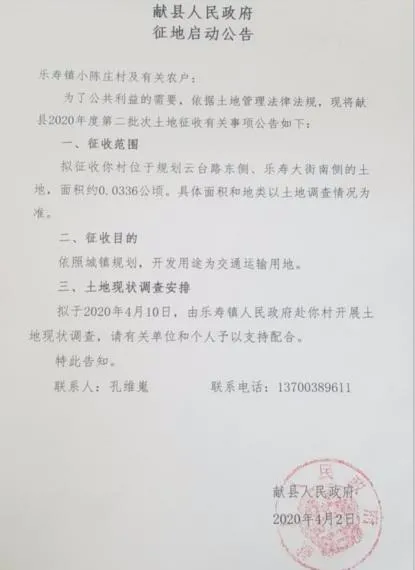 不过要提醒大家的是,上述《土地管理法实施条例》(征求意见稿)中的内容,并未正式实施,现阶段还不具有法律效力,不过已经有地方开始借鉴了。下面来看看地方上发布的土地征收启动公告是怎样的...