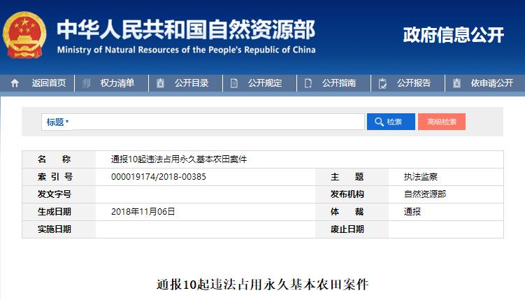 今天在自然资源部就通报了10起违法占用、破坏永久基本农田案件。